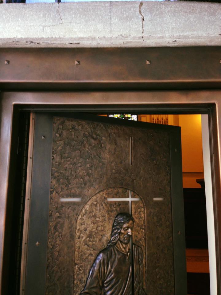 Faux finis sur cadre en acier de la porte sainte Basilique-Cathédrale Notre-Dame de Québec